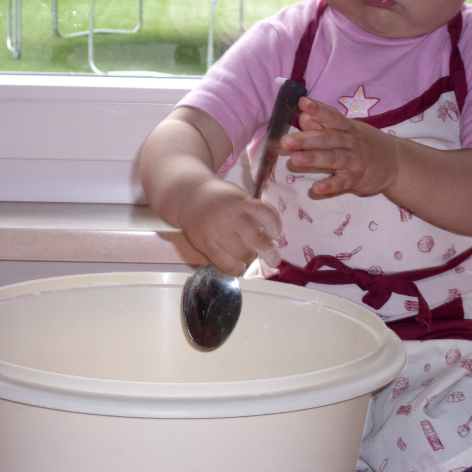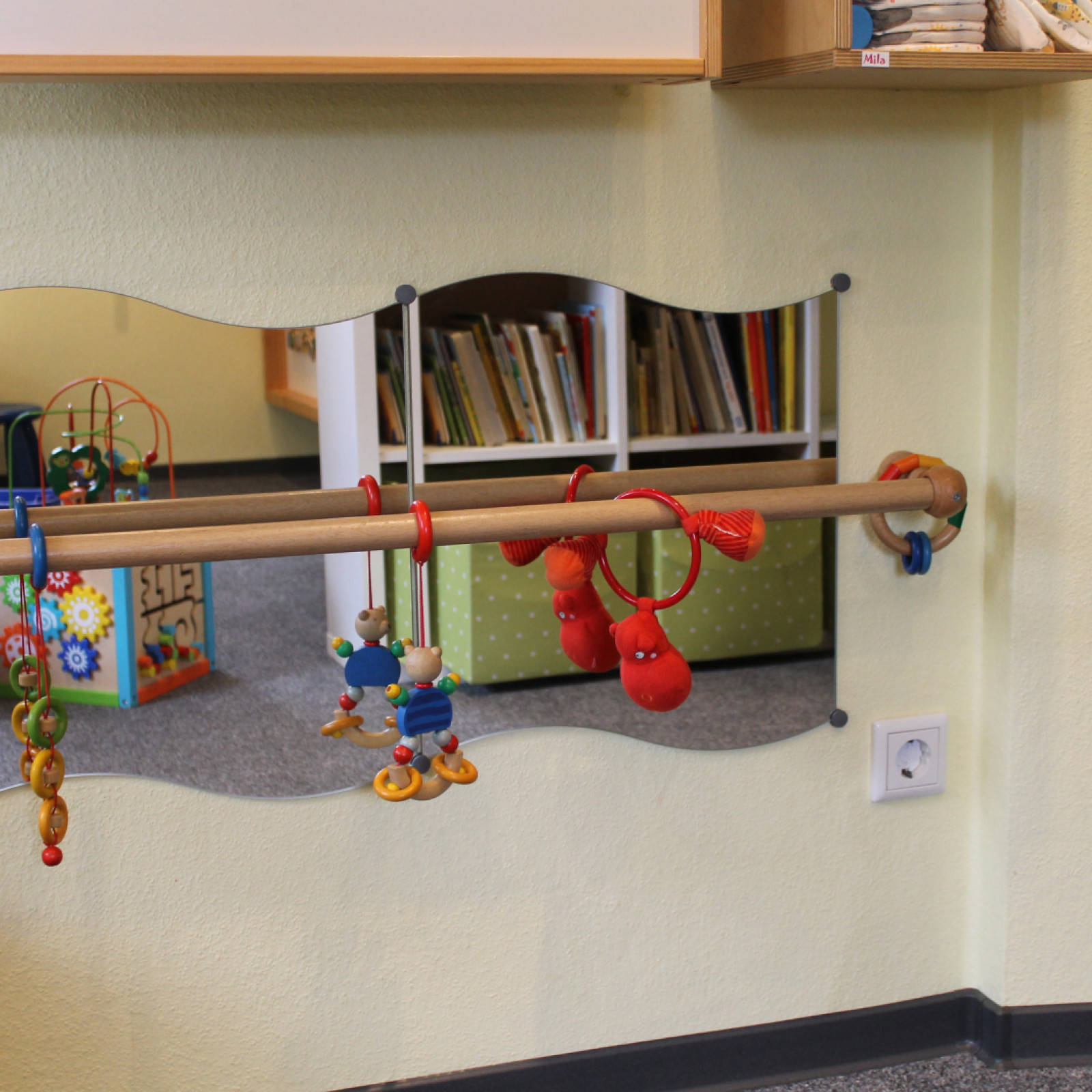 Der Pflegeraum hat eine direkte Anbindung an unsere Küche. Diese nutzen wir zum Frühstücken, Mittagessen, sowie für verschiedene Backaktionen, oder auch zum malen mit Finger- und Wassermalfarben.